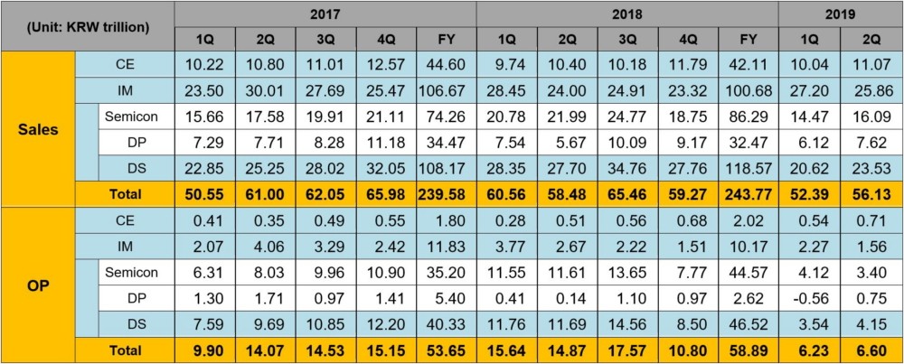 In sintesi, nel Q2 2019 Samsung ha registrato: