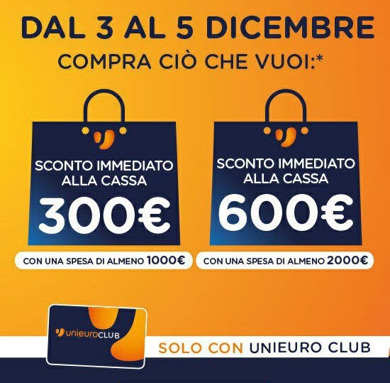 L'iniziativa è valida fino a domani, 5 dicembre 2019, ed esclusivamente nei punti vendita della catena Unieuro, dunque non online, per i soli possessori di carta Unieuro Club, comunque gratuita.